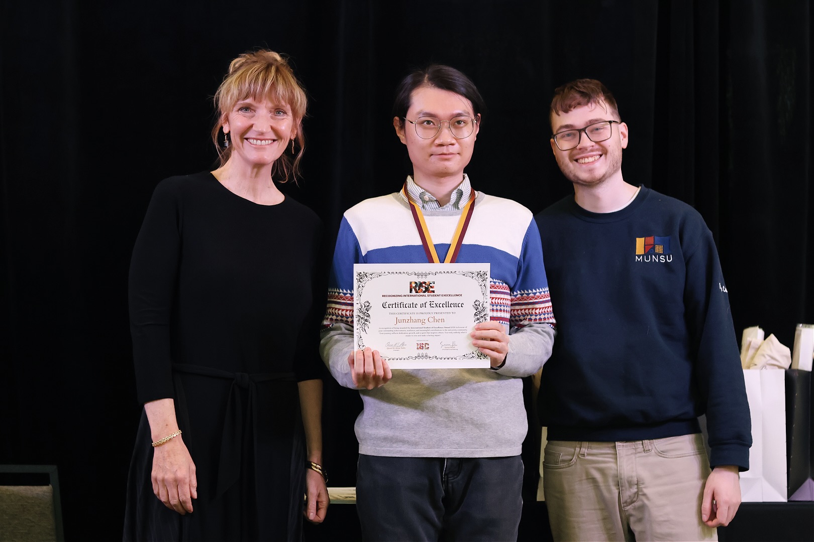 (L-R) Dr. Janet Morrison, President and Vice-Chancellor of Memorial University; Junzhang Chen; Blake Colbran, Executive Director of Student Life at MUNSU (Photo provided by ISC)